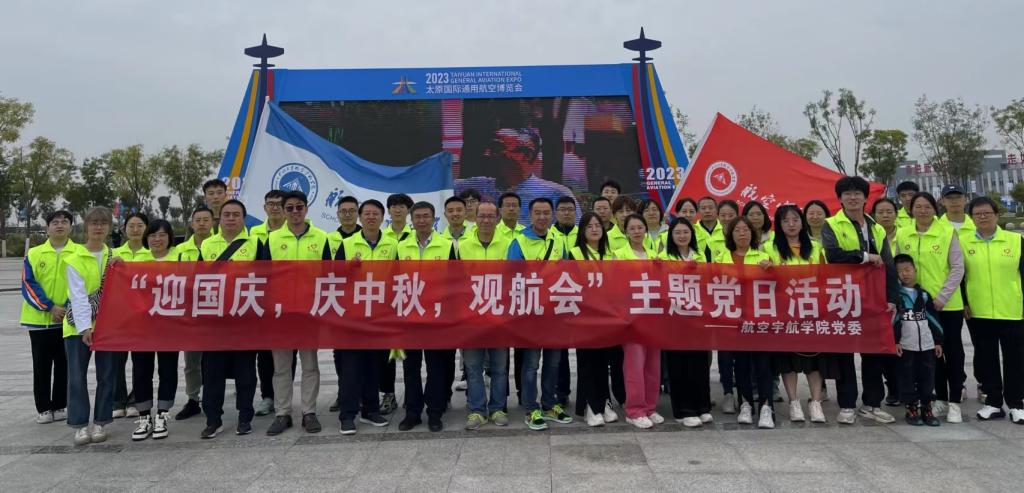 党委为丰富党内生活,加强党性修养,厚植航报国精神,精心筹划组织学院教工党支部成员、各学生支部代表于9月28日赴太原尧城机场参加了2023太原国际通用航空博览会进行“迎国庆,庆中秋,观航会”主题党日活动。
