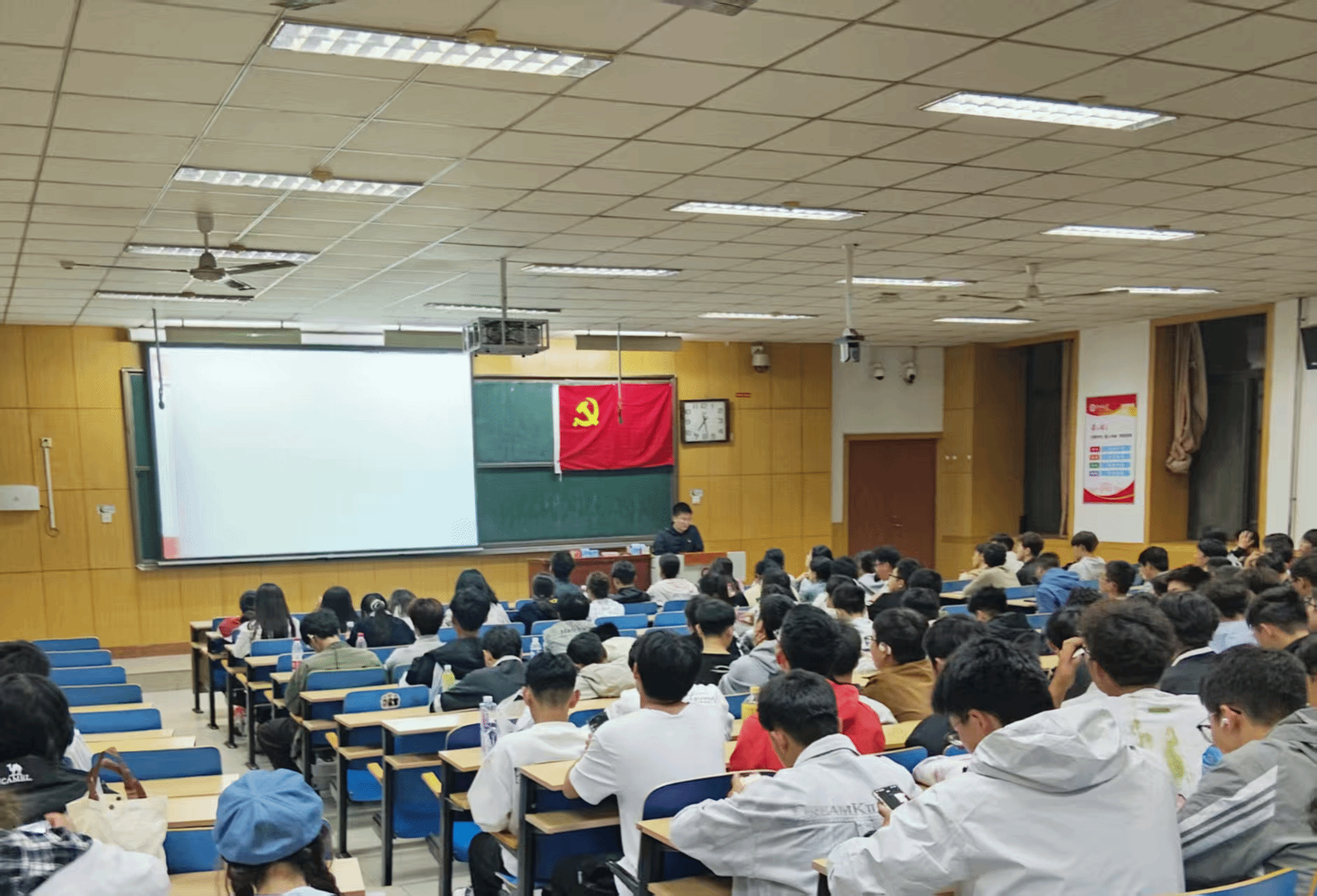 大会先开展入党启蒙环节。党支部副书记畅少帆讲解“入党流程及相关情况”“党规党纪”,明确入党核心流程、申请要求与纪律准则;党支部纪检委员覃安哲则围绕“党员权利与义务”“党的精神内涵”分享,帮助同学们理解党员职责、汲取红色精神力量。