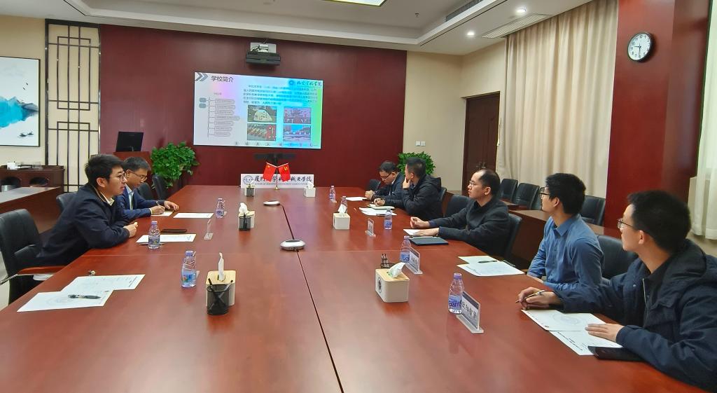 李京阳院长介绍了学校发展史、学院师资力量、科研成果、成果转化、教育教学以及青年教师的成长等情况,党委副书记史瑞根介绍了学院建院以来的学生工作开展情况。然后,双方就学航空航天学院大团队的组建情况、信息化平台的打造、学科建设情况等工作进行了深度交流和沟通。