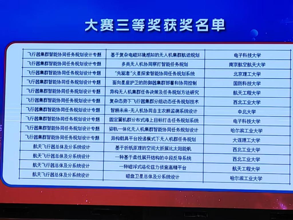 2023年8月20日至24日,“新动航空杯”第九届中国研究生未来飞行器创新大赛决赛在沈阳航空航天大学举办。我校由李京阳老师指导,高舒煜、海日汗、韩雨桐、徐震翰、赵荣珍等研究生完成的“创新型消防无人机设计-JZ系列无人直升机”项目团队、由邵星灵老师指导,朱璟、刘洪城、张飞智等研究生完成的“智耕未来-无人机协同自主农耕监测系统设计”项目团队,在大赛中表现优异,均荣获大赛三等奖,中北大学成为了山西省唯一进入决赛并获奖的高校,同时我校也获得“优秀组织奖”。