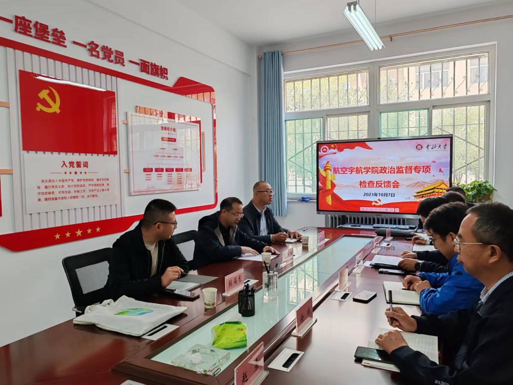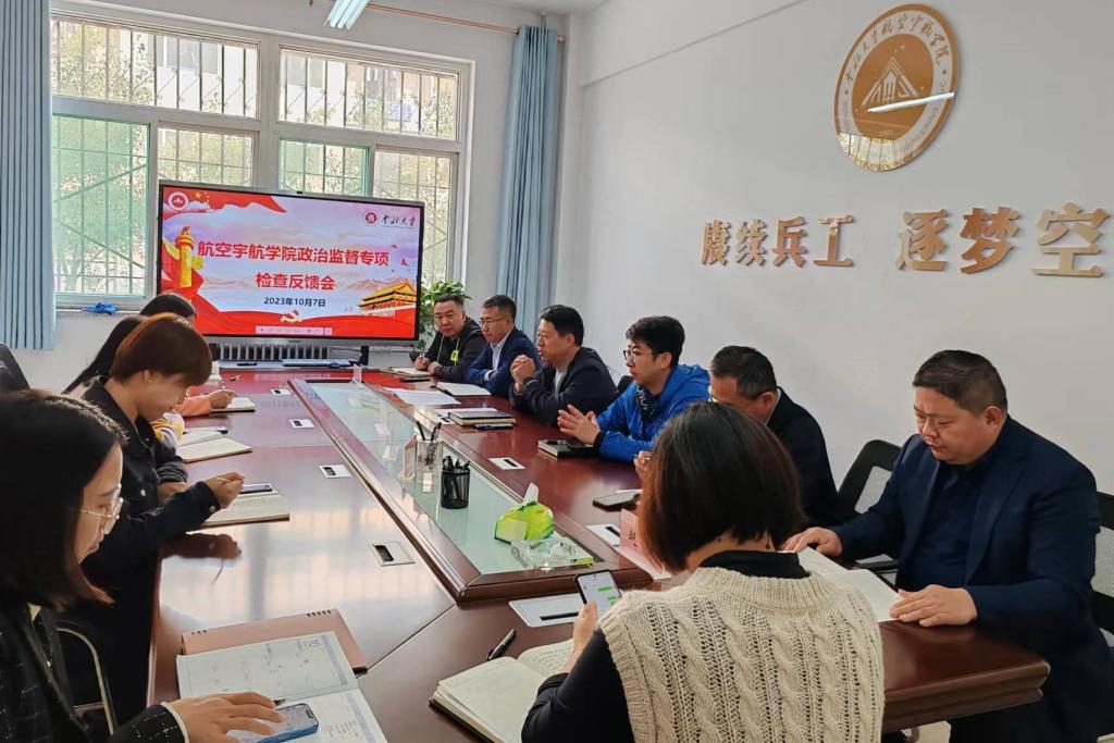 党委政治监督专项检查情况的报告。在对学院党委工作进行了肯定的同时,主要从聚焦落实习近平总书记重要指示批示精神方面、坚决捍卫中国特色社会主义制度落实、全力保障党的二十大精神和党中央重大决策部署及省委重大工作举措落实落地等六个方面提出了9个需要整改的问题,并指出了学院党委要进一步提高政治站位,增强大局意识,积极引进优秀人才,大力推进航空宇航学科建设,争取早日申报成功博士点,经常性开展谈心谈话工作,做好会议记录等合理化建议。