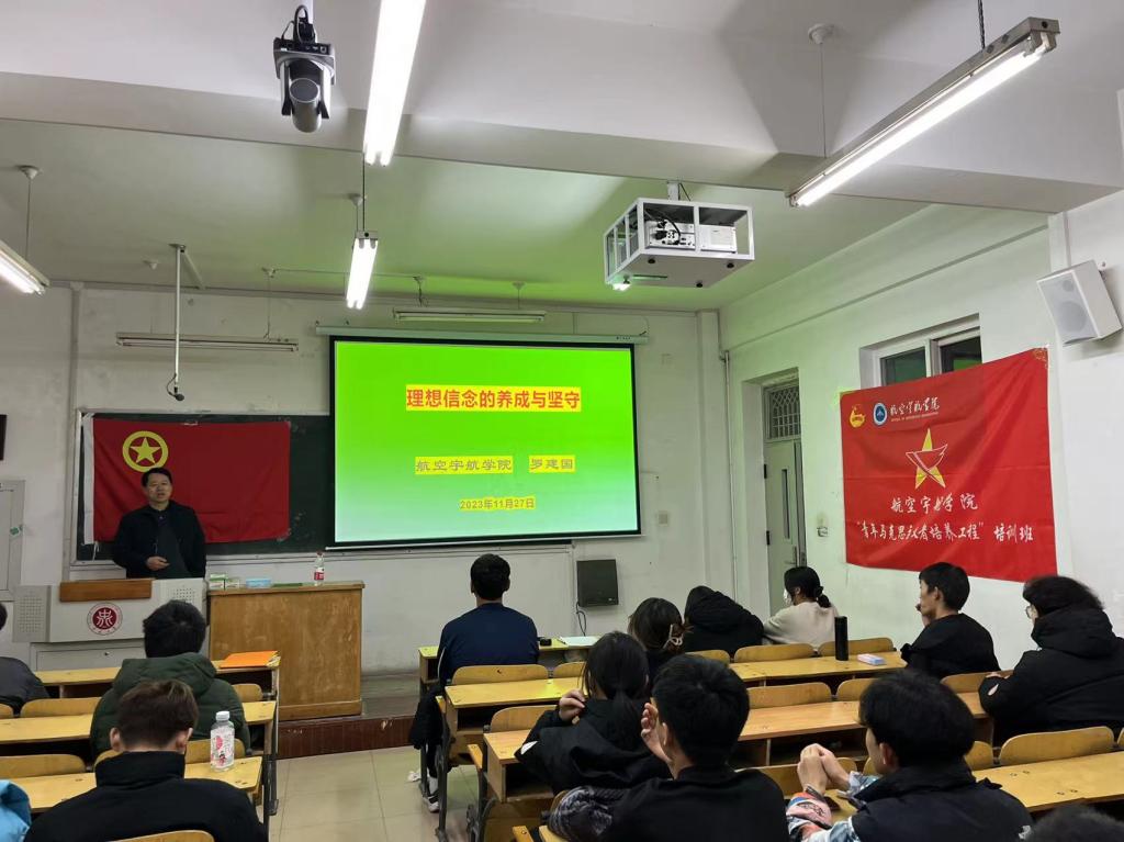 为深入学习贯彻习近平新时代中国特色社会主义思想,认真落实习近平总书记在党的二十大报告中对当代青年的嘱托,引导青年学生坚定理想信念,着力为党培养和输送青年政治骨干,11月27日晚上,学院党委书记罗建国在10209Z为学院“青马工程”培训班全体学员作题为《新时代青年理想信念的养成与坚守》的专题报告,青马班全体学员和团学干部、新发展团员参加培训。