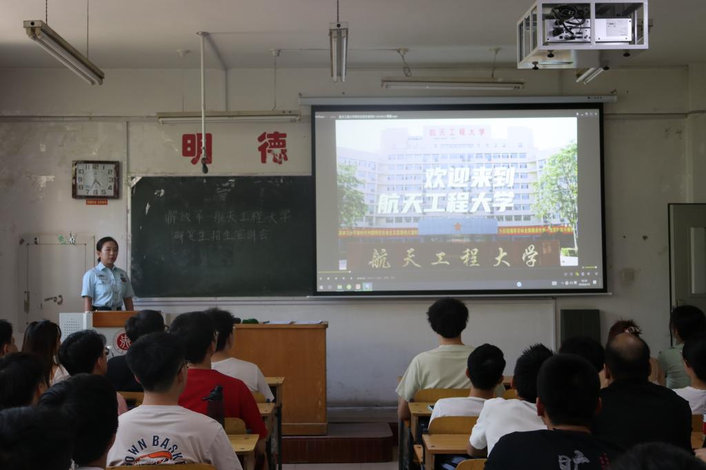 宣讲会以一部激情昂扬的宣传片作为开场,瞬间点燃了在场每一位观众的心。随后,陈老师详细介绍了解放军航天工程大学的历史沿革、学科特色、教学资源、科研成果以及2024年的招生政策,并特别强调了对于大学生的优惠政策,包括学费减免、就业优先、学历提升等一系列激励措施,旨在吸引更多高素质人才加入军校,为国家培养未来的军事将领和技术骨干。陈老师表示,军校教育是国防和军队现代化建设的基础性工程,航工大欢迎有志青年共同加入,共同承担起保家卫国的神圣使命。宣讲会还设置了互动环节,老师们详细解答了学生关于入伍条件、体检标准、学习生活、未来发展等方面的疑问。