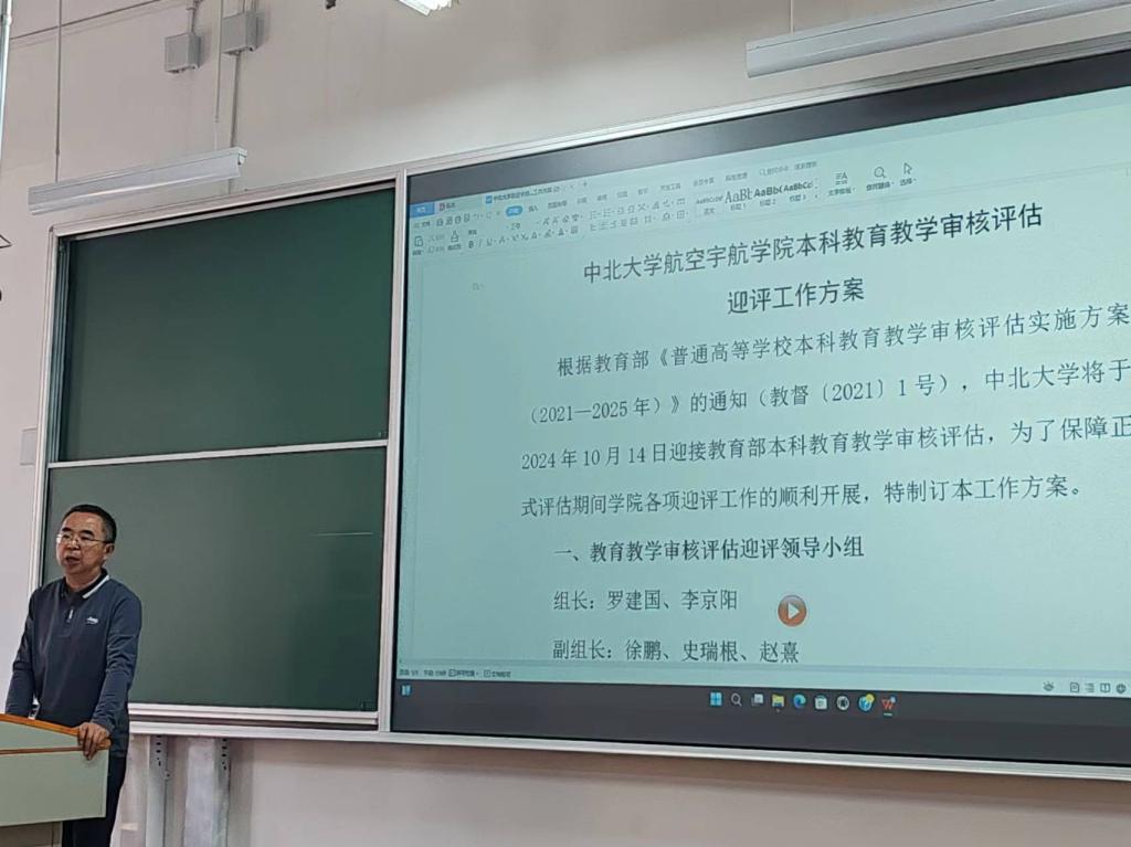 本科教育教学审核评估迎评工作方案》,李京阳院长做了“以审核评估工作为契机全面推进学院高质量发展”的动员讲话,希望大家提高政治站位,高度重视专家意见,强化问题导向,确保整改落实到位;随后,李京阳院长面向全院教师进行“中北大学2024版职称改革”的动员讲话,重点解读了学校职称改革举措,鼓励学院教师发表高水平成果,积极申报职称。