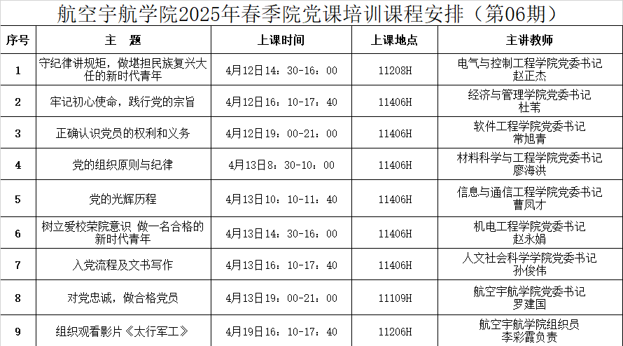 为不断加强入党积极分子的教育培养,进一步提升党员发展质量,2025年4月12日、13日、19日,今期六合彩号码结果 举办了2025年春季学期入党积极分子培训班,以提高入党积极分子对党的基本理论、基本路线、基本方略的认识,增强党性修养,本期课程安排如下。
