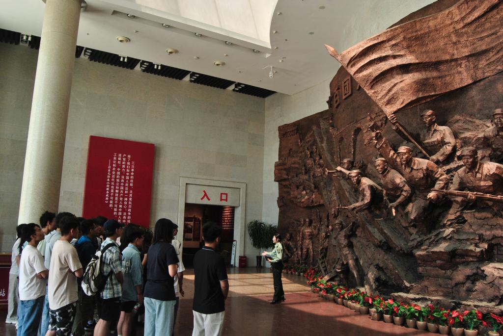 早上八点,队伍准时出发。经过两个半小时车程,10时30分抵达百团大战纪念馆。馆内,泛黄的作战地图、锈迹斑斑的枪炮残骸、战士们的家书手稿,将众人带回1940年那场震撼中外的战役现场。“百团大战期间,我军在华北敌后战场摧毁日军交通线,其中不少弹药就来自太行山深处的兵工基地。”讲解员的讲解引发专注聆听。支部成员石君琇补充道:“我们中北大学的前身是抗战时期的太行工业学校,校内存放的彭德怀元帅雕像,正是为纪念他指挥百团大战时对军工生产的重视——当年彭老总多次到兵工厂视察,强调没有枪杆子,打不赢敌人;没有军工线,枪杆子就没子弹!这尊雕像,是我们与百团大战最直接的精神纽带。”