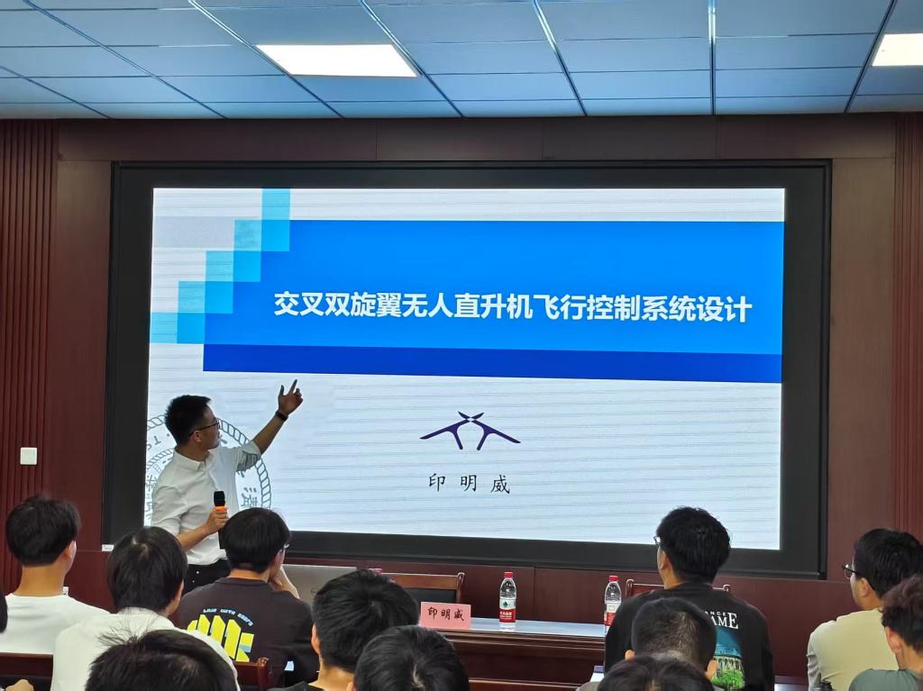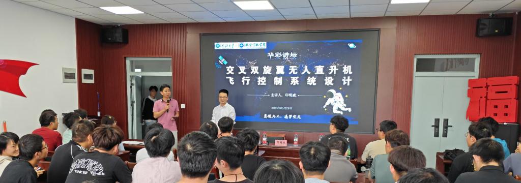 ,在学院 310 会议室开展了一场题为《交叉双旋翼无人直升机飞行控制系统设计》的专题讲座。学院院长李京阳教授出席并致开场辞,对印明威高工的到来表示热烈欢迎;张丽花老师详细介绍了他的专业背景与行业成就,为讲座拉开序幕。