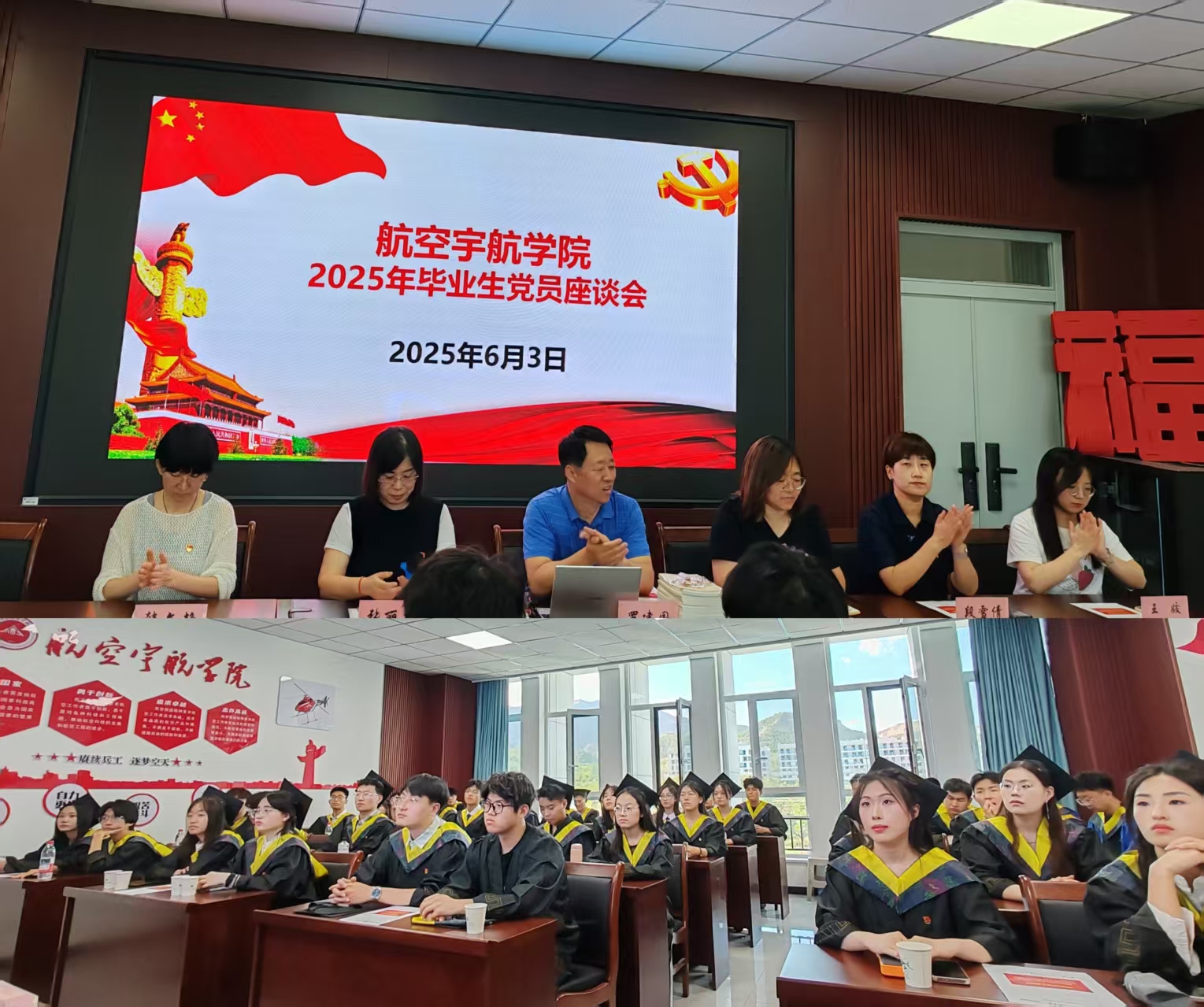2025年6月3日下午,今期六合彩号码结果 在完成全体毕业生合影后,在学院楼310会议室举行2025届毕业生党员专题党课暨座谈会。学院党委书记罗建国、党委委员张丽花、各学生党支部书记及组织员出席会议,与全体毕业生党员进行深入交流。会议由张丽花老师主持。
