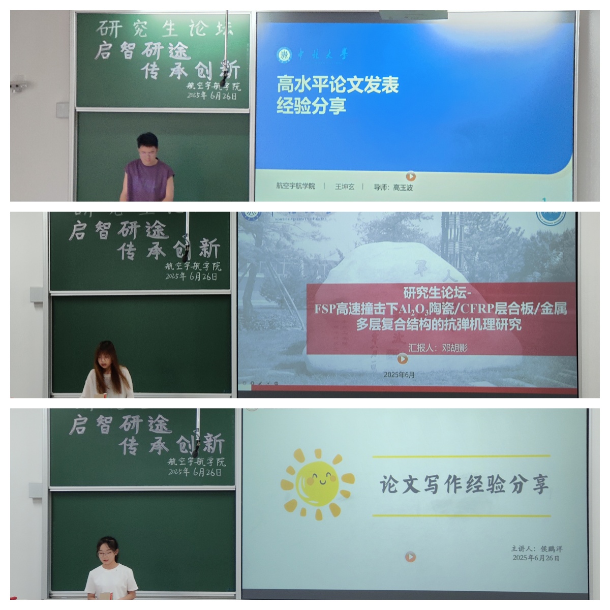 本次论坛通过“经验分享+互动问答”模式,不仅为低年级研究生提供了宝贵的学习机会,更在学院内营造了良好的学术氛围。未来,学院将继续完善学术交流平台,通过多元化的活动形式,助力航院学子在科研创新道路上不断突破,为航空航天领域培养更多优秀人才。