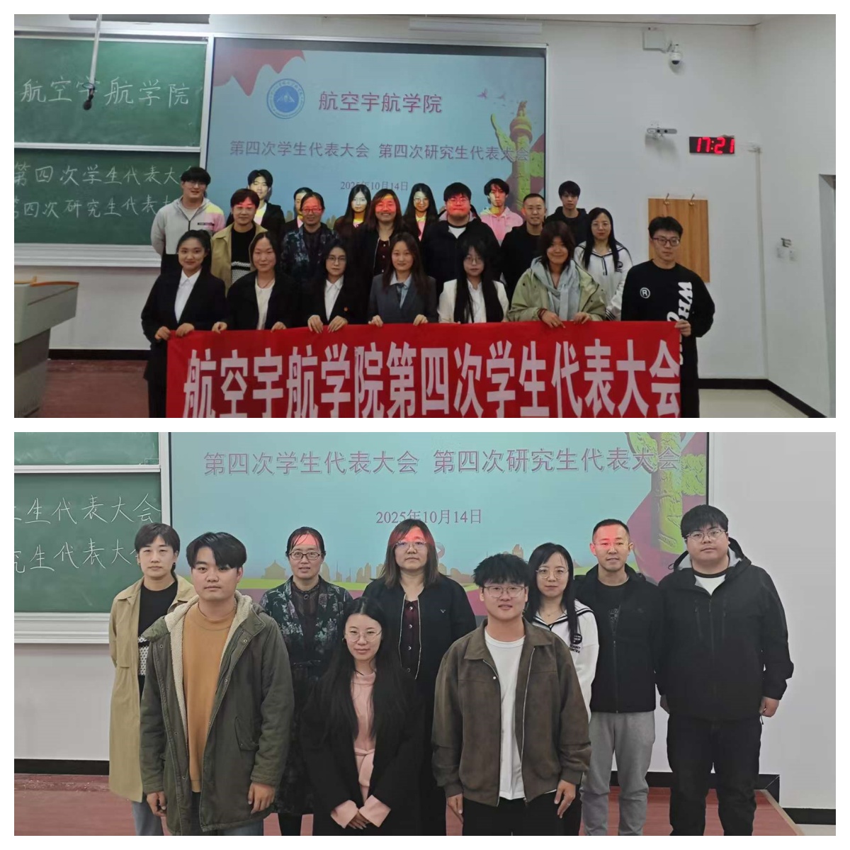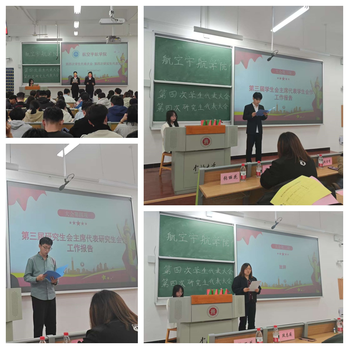 第四次学生代表大会、第四次研究生代表大会于2025年10月14日在17101H召开,学院团委副书记王姣,辅导员段志薇、李国平、段雪倩、霍英杰、张志磊老师及各班学生代表出席大会。