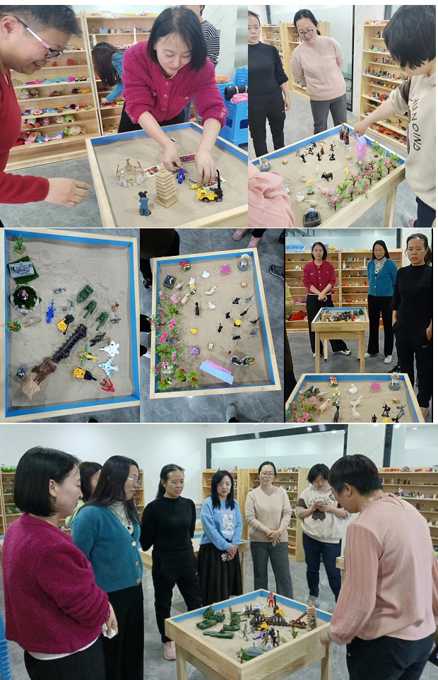 接着让每组的成员按照自己组的故事将其展示在沙盘上,根据沙盘结果赵老师分析了沙盘所体现的人物内心的特点,深刻剖析了产生这种状况的原因及不足,让大家对自己有了更深刻的了解!