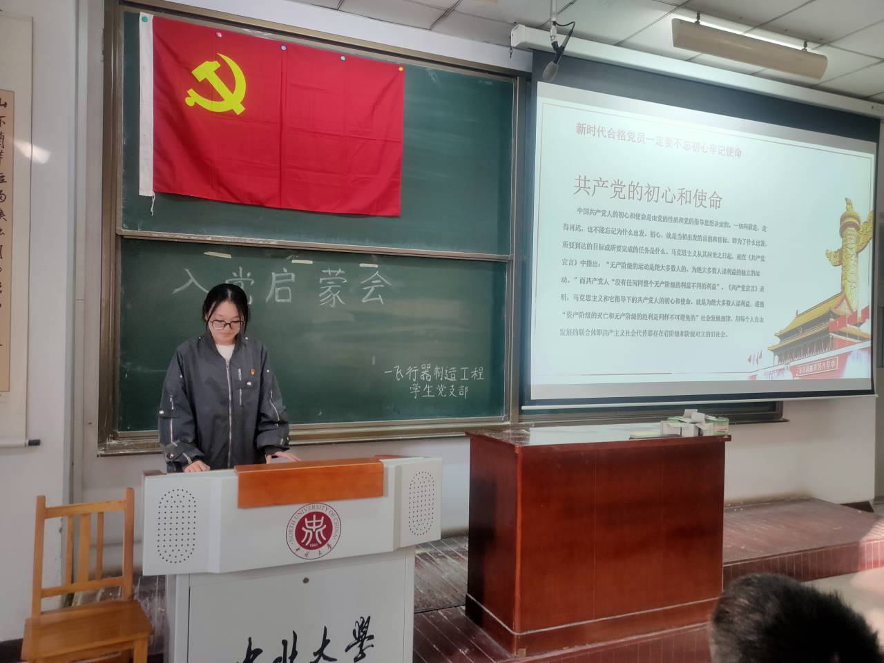为使23级本科新生和研究生新生对中国共产党有基本的认知,增强入党积极性和主动性,飞行器制造工程学生党支部于2023年10月20日在11305教室中顺利举办了新生入党启蒙教育活动。