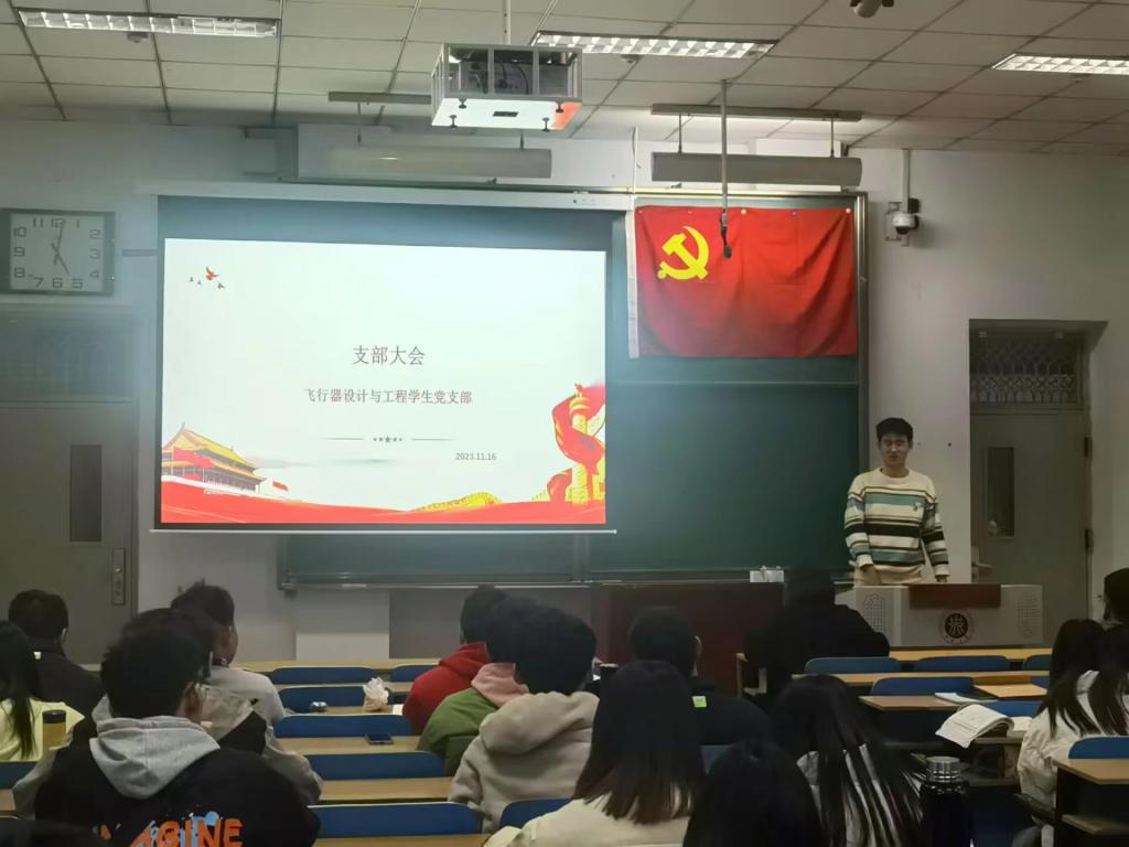 2023年11月16日下午4时,飞行器设计与工程学生党支部在11306H教室召开了支部大会,由党支部书记段志薇老师进行了以“不忘初心 牢记使命——学生党员‘三问’”为主题的党课教育。