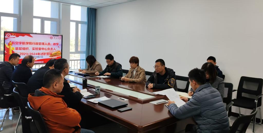 在B316会议室议室召开2023-2024学年行政管理人员、教学基层组织、实验室中心负责人述职答辩会,院党委委员、科级干部、各基层教学组织负责人、实验室负责人、组织员、教工代表参加了会议,会议由院党委书记罗建国主持。