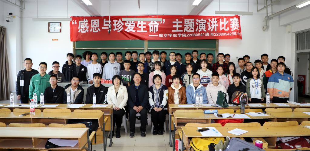 在十五号教学楼成功举办“感恩与珍爱生命”主题演讲比赛,此次活动由工程力学专业22080541、22080542班联合举办,门金璐同学和黄志亮同学主持。活动特别邀请学院党委书记罗建国、学生科科长张丽花、团委负责人段志薇、班主任安美荣等老师亲临现场。