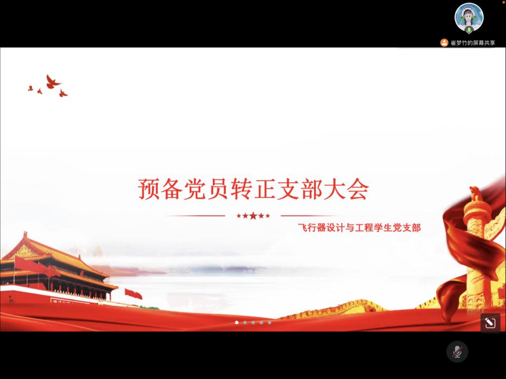 2022年12月15日上午10:00,飞行器设计与工程学生党支部通过腾讯会议在线上召开了预备党员转正大会,会议由支部副书记崔梦竹同志主持,全体党员参加了会议。