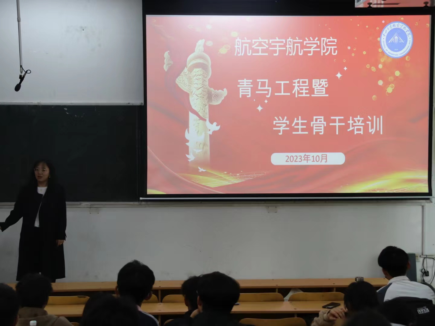 在十号教学楼举行青马工程暨学生骨干培训会。共60余名学生骨干参会,团委学生副书记曹璟琦主讲。培训会由团委副书记王姣主持。
