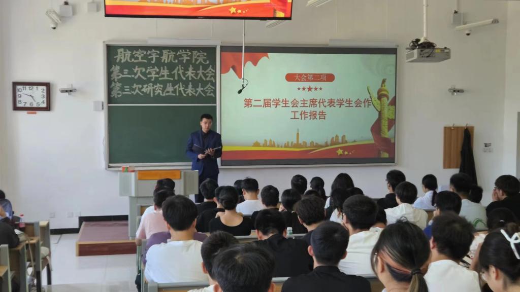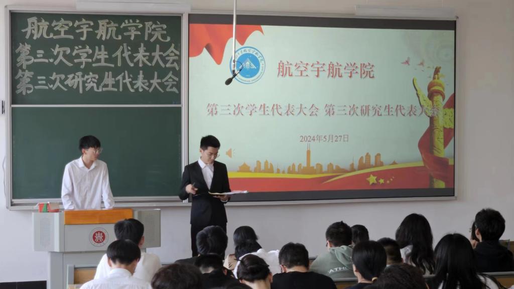 第三次学生代表大会、第三次研究生代表大会于2024年5月27日在17102H召开。会议由第二届学生会主席团成员张润泽主持,学院团委书记王月花,团委副书记王姣,辅导员李国平老师及各班学生代表出席大会。