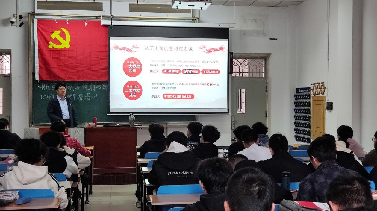 党委书记罗建国老师讲授。罗书记结合党的历史及当前国内外形势,给我们强调了党员忠诚于党的重要性。他指出,忠诚不仅仅要体现在思想上,要坚决维护党的统一领导,时刻保持高度的政治觉悟,应该落实在行动中去,要做到“致知于行”。