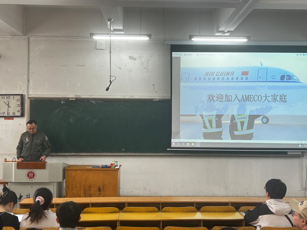 联合Ameco(国航北京飞机维修工程有限公司)于10103H教室举行了专场招聘宣讲会,Ameco人力资源部招聘经理徐国亮、人力资源部人事高级专家孙青和空客大队高级技术主管刘元昌出席会议。学院对于学生的就业工作高度重视,院领导号召毕业生积极参加,也鼓励低年级学生前去学习,尽早做好大学的职业规划。