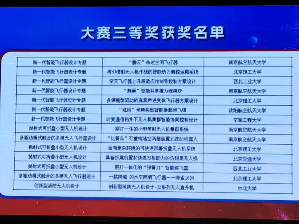 2023年8月20日至24日,“新动航空杯”第九届中国研究生未来飞行器创新大赛决赛在沈阳航空航天大学举办。我校由李京阳老师指导,高舒煜、海日汗、韩雨桐、徐震翰、赵荣珍等研究生完成的“创新型消防无人机设计-JZ系列无人直升机”项目团队、由邵星灵老师指导,朱璟、刘洪城、张飞智等研究生完成的“智耕未来-无人机协同自主农耕监测系统设计”项目团队,在大赛中表现优异,均荣获大赛三等奖,中北大学成为了山西省唯一进入决赛并获奖的高校,同时我校也获得“优秀组织奖”。